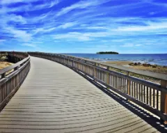 Silver Sands State Park features over a mile of boardwalk and sandy beach, with scenic views of Charles Island, bird‐watching opportunities, and a relaxing coastal trail. Discover Milford, CT+1